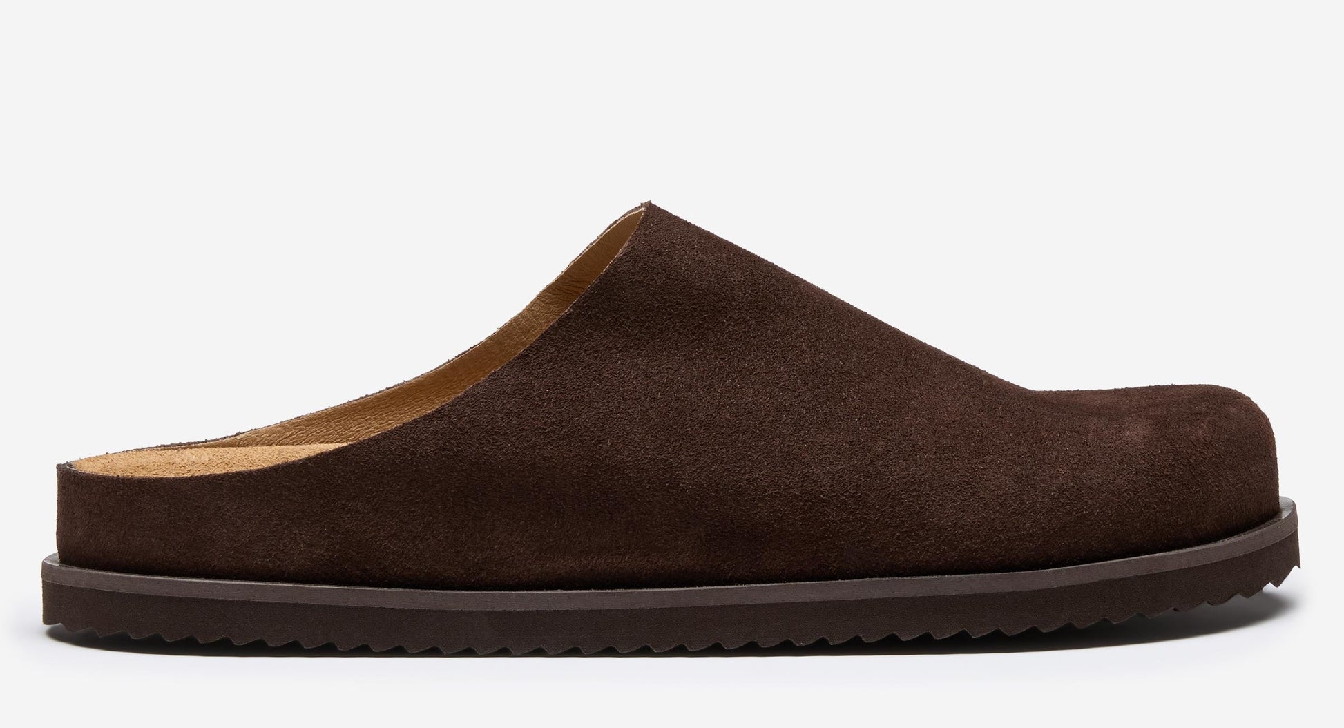 Our comfy mule slipper is from our specialist factory in Spain. The moulded cork footbed is topped with a soft suede insole with an additional layer of padding, supporting the arch of the foot and we’ve added a practical outdoor EVA sole. The clean upper is leather lined and made from a single piece of soft calf suede which wraps around the footbed stitched with a single seam at the back –all in all a versatile and practical modern slipper.